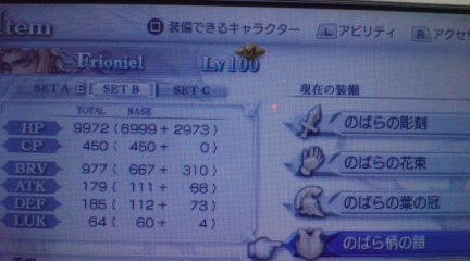 とりあえず↓記事の後、オニオン→ティナ→まぶしい人 でプレイしたんですが、この三人を一気にぶっ通しでプレイし、んで調子にのってのばらのレベル上げしてたらレベル50になったんでカオス討伐ストーリーに出かけたら、レベル100になって帰ってきました。スペシャルデー+黒チョコボすげぇ。