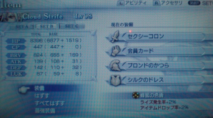 あとはバッツとクラウドあたりの専用武器は欲しいなぁ。できればウォルのも。まぁ当分できなさそうですな…ワイルドローズはスペシャルデーに4回ボコったら落としてくれたけど。素材集めしたほうが早いかも。